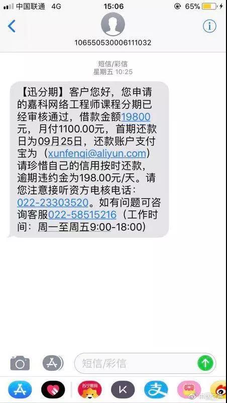 然而事情并没有因此结束,从今年9月开始,此前办理贷款的学生们没有再收到天津嘉科教育培训机构转来的还款,而部分涉事贷款平台却仍然要求学生继续还款。少则几千,多则几万的贷款,对于大部分没有收入来源的学生而言并不是一个小数字。