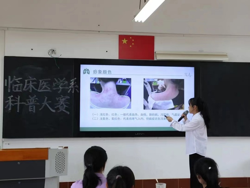 为充分激发同学们对科学与科普的热爱,培养科学的探索精神及传播科普的积极性,5月12日,临床医学系科普讲解大赛在A405教室成功举办,担任本次评委的是党务办主任郭清燕老师,共有12名选手参加本次大赛。