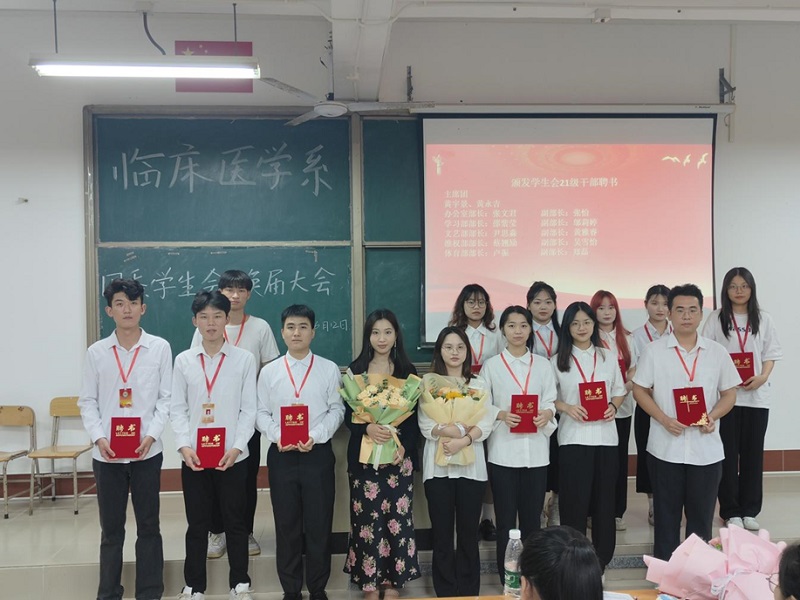 为推进临床医学系学生会的建设,发挥学生骨干带头作用,为学生会注入新活力。2023年6月12日晚,临床医学系于D102举行第三届学生会换届大会。出席本次大会的老师有党总支部副书记陈应娟、党务办主任郭清燕、团委书记陈咏嫦、学生会指导老师何姹琅、辅导员刘凯韵、杨嘉浩老师以及学生会全体成员。