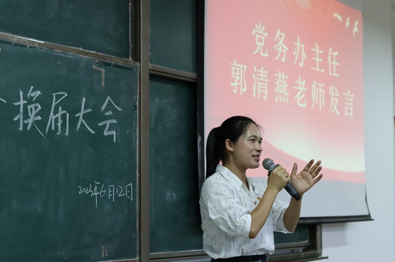 (图为党务办主任郭清燕和党总支部副书记陈应娟发言)
