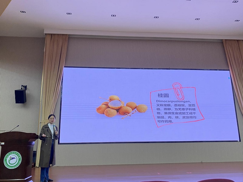 其次,黄丹青为同学们介绍了茂名部分道地药材,在讲解它们的疗效和使用方法的同时,也讲了食疗和药疗的注意事项。