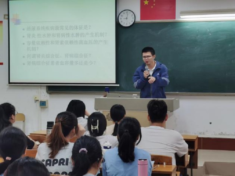 为了帮助同学们掌握良好的学习方法和更快适应未来在医院临床实习的工作环境。2023年12月11日上午,在湛江中心人民医院实习的21级临床医学3班卓力受邀返校为2022级临床医学2班和3班的学弟学妹们传授实习经验、解答实习疑惑与分享近半年的实习生活。