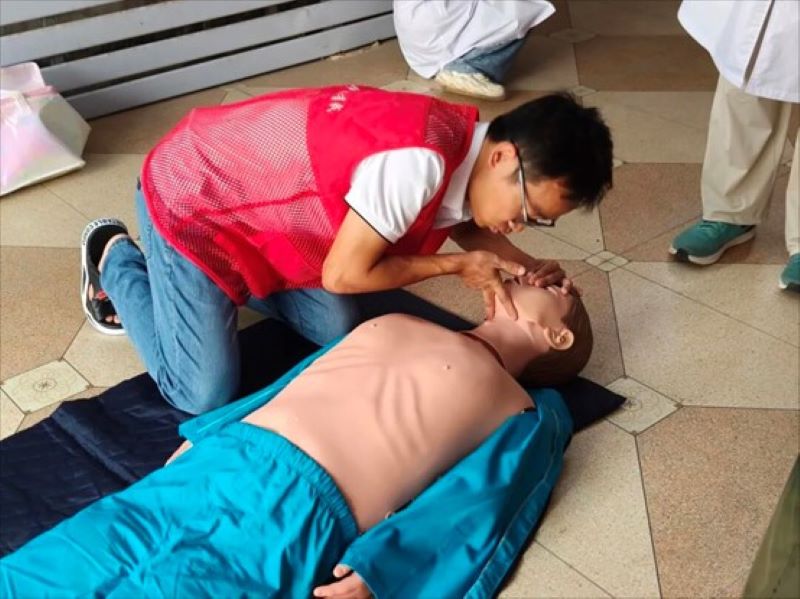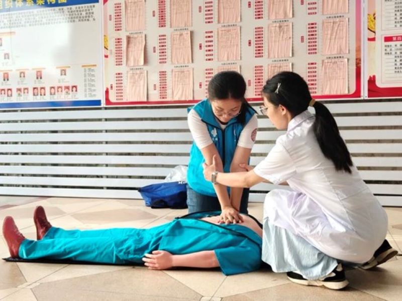 针对海姆立克急救法,队员们则通过情景模拟加深理解。“遇到有人异物卡喉无法呼吸时,要迅速从背后环抱患者,双手握拳置于其肚脐与剑突之间,快速向上冲击腹部。” 队员现场邀请社工人员扮演 “患者”,演示成人、儿童不同年龄段的急救姿势差异,同时提醒大家:“若患者已失去意识,需立即转为心肺复苏,不能仅依赖腹部冲击。”
