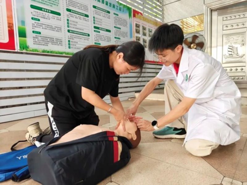 小分队专门面向文蓬村村委、村民及鳌头镇社工人员,开展急救知识专项培训。培训中,队员们结合模拟人,详细讲解心肺复苏术、海姆立克急救法的操作步骤,重点强调事故发生后 “黄金4分钟” 的应急处理要点。从胸外按压的力度、频率,到人工呼吸的正确姿势,队员们逐一示范,手把手指导参与者实操练习。文蓬村驻村第一书记陈便及村委干部积极参与,在队员的指导下反复练习,直至掌握标准动作。“以前总觉得急救离自己很远,这次培训让我学会了实用技能,以后遇到紧急情况也能帮上忙了。” 参与培训的社工人员感慨道。
