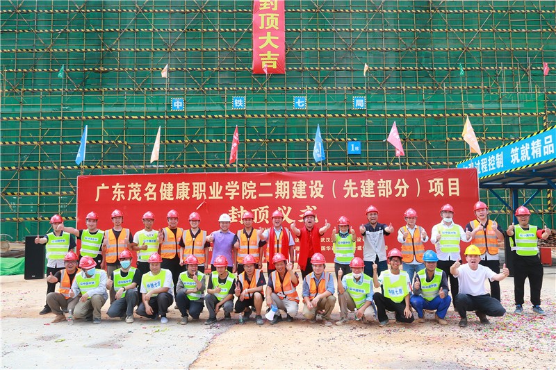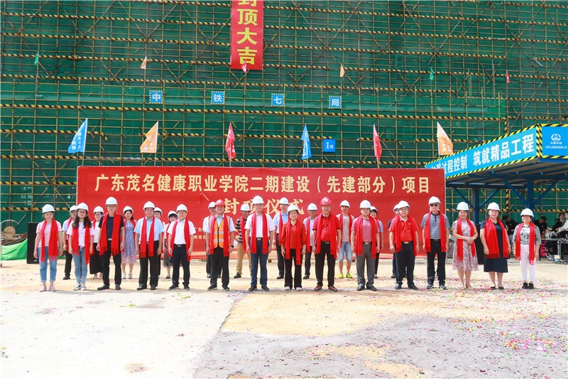 5月29日上午,广东茂名健康职业学院举行了二期建设(先建部分)项目建筑主体封顶仪式,学院领导班子成员、中层干部,项目施工单位、监理单位参加了封顶仪式。