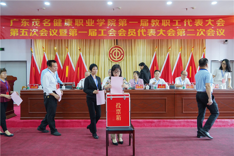 最后,广东茂名健康职业学院第一届教职工代表大会第五次会议暨第一届工会会员代表大会第二次会议在嘹亮的《国际歌》歌声及热烈的掌声中胜利闭幕。