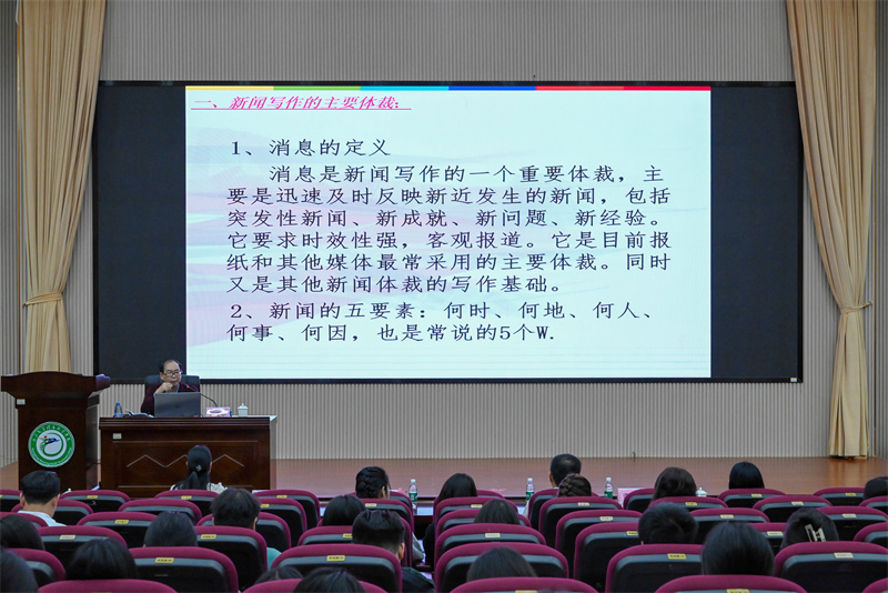 “新闻的要素是什么?怎样写好新闻?如何制作视频”一堂引人入胜、内容丰富的高质量新闻写作和拍摄技巧的培训课在广东茂名健康职业学院学术报告厅举办。