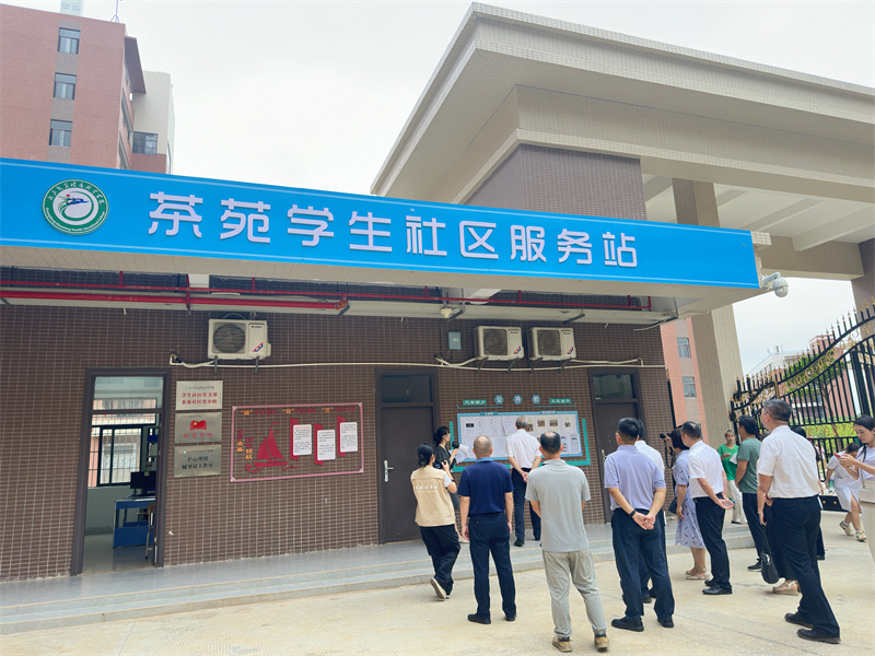 在茶苑学生社区服务站,参观团走进“护心理情”辅导员工作室、党员活动室和今年“绿美广东”活动种植的油茶树苗现场,恰逢油茶树开花,香气四溢,领导借此机会与在场师生共赏油茶之美,共话育人之路,拉近了彼此的距离。