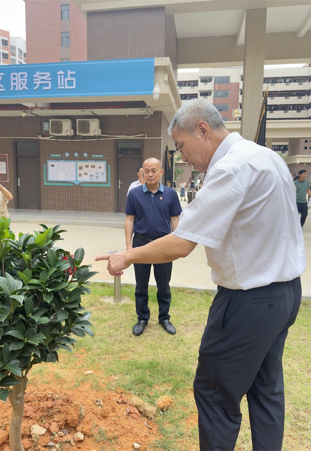 接着,参观团走进了荔苑、桂苑、沈苑和橘苑等学生社区服务站,现场听取各社区建设情况,并察看了今年“绿美广东”活动中在相对应社区种植的荔枝、龙眼、沉香、化橘红树苗。