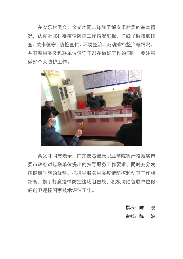 学院书记余义才带队到安乐村委会指导疫情防控及创卫工作