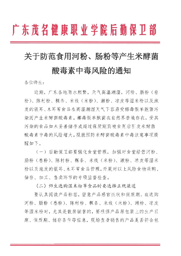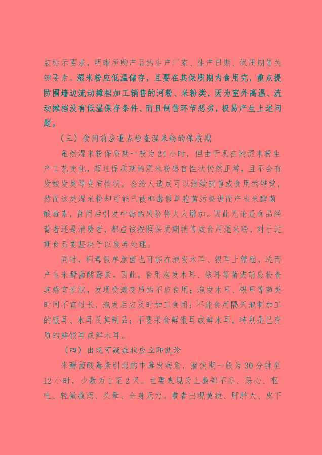 关于防范食用河粉、肠粉等产生米酵菌酸毒素中毒风险的通知