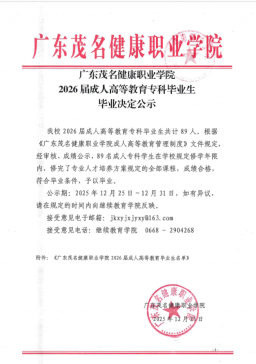 广东茂名健康职业学院2026届成人高等教育专科毕