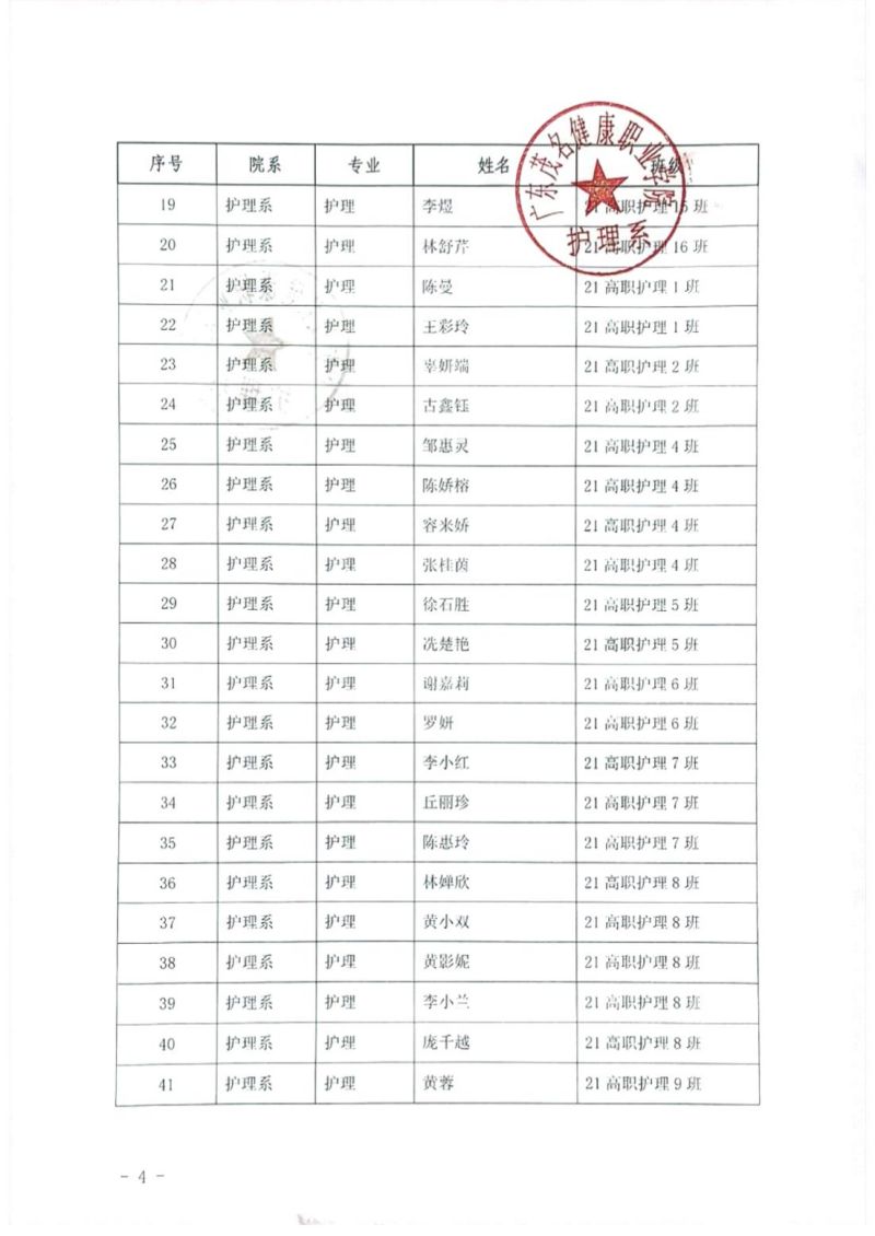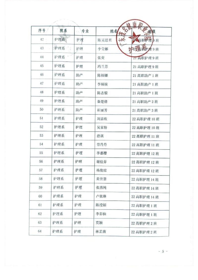 关于护理系2022-2023学年学生国家励志奖学金初审名单的公示