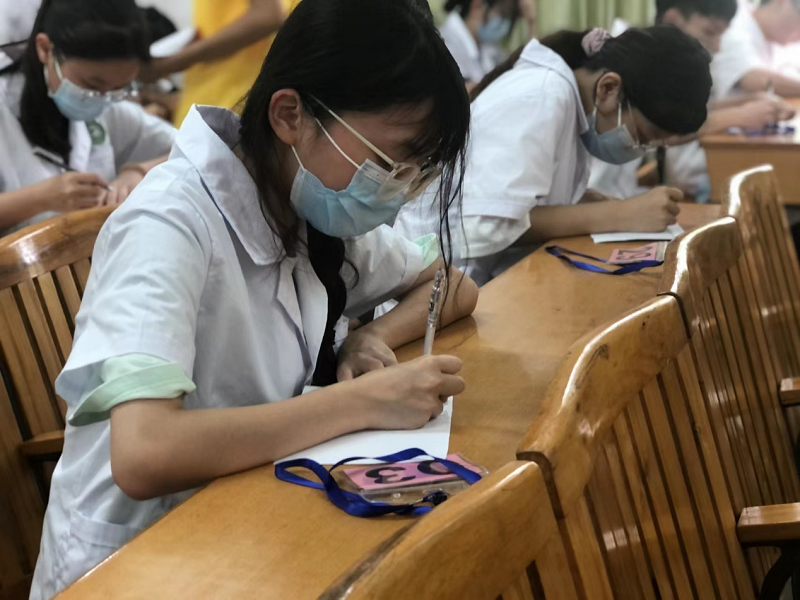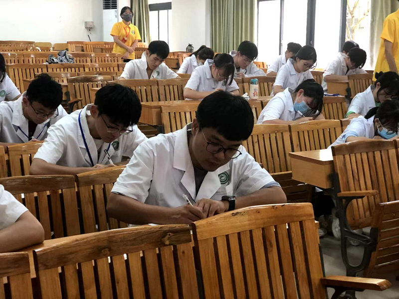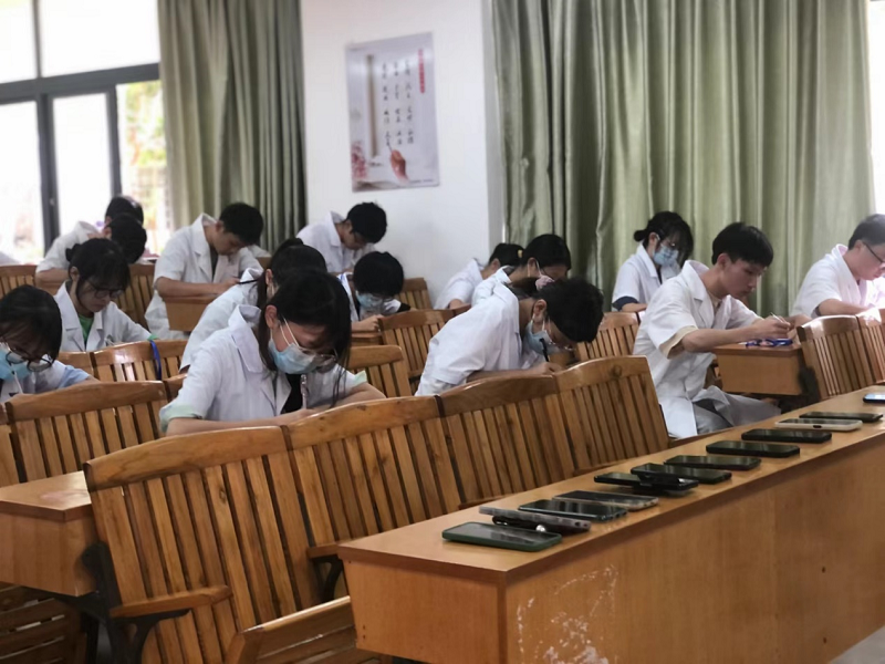 本次竞赛分为两个环节。首先,李健老师现场发布舌诊图片,参赛选手根据题目照片信息,依据中医理论判断其舌质、舌苔,并综合分析此舌的病理意义。作答完毕后,工作人员将纸质答案进行回收,李健老师进行审核给分。随后,负责教师在学习通内发放舌诊判断题,参赛选手需在三分钟内完成答题,最后按照两次作答得分的高低选出9位获奖选手。在竞赛过程中,参赛选手们精神饱满、沉着冷静,彰显出其扎实的理论基础、良好的医学素养。