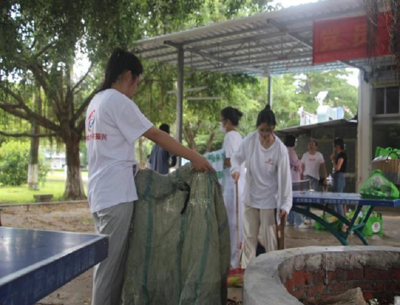 (图为志愿者打扫卫生现场)