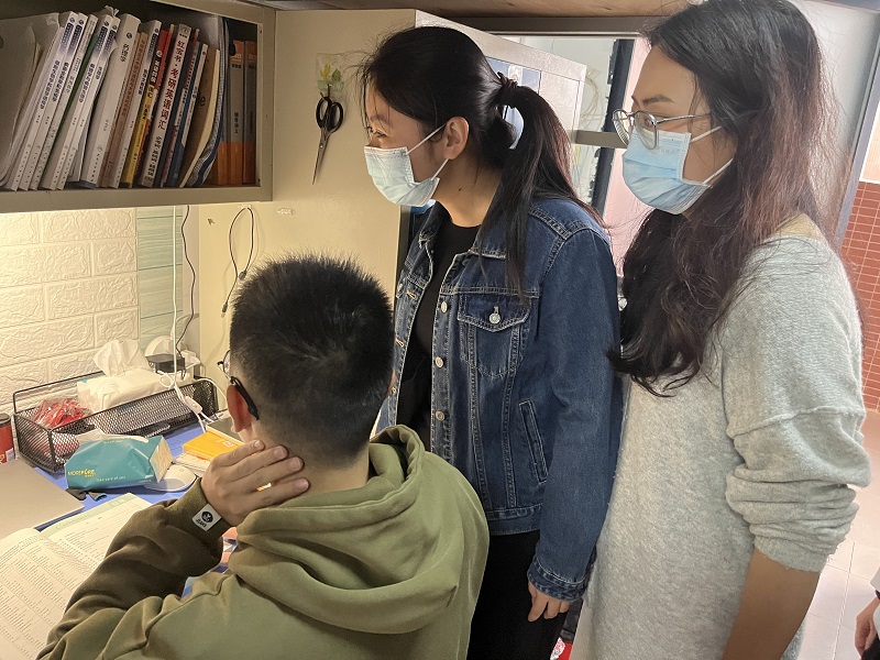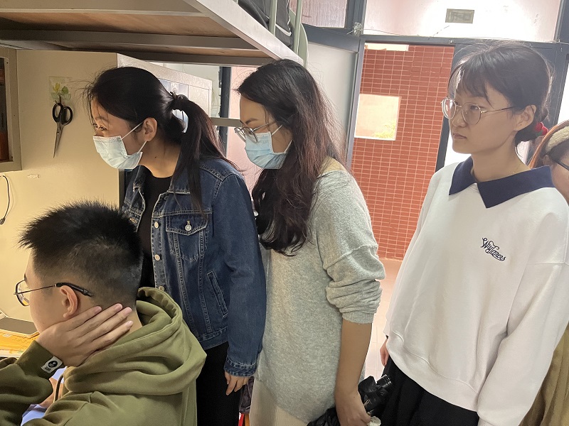 走访过程中,陈应娟书记携同辅导员、班主任与同学们进行了亲切、深入的交流。2022级的同学们,来到学校刚满一学期,面对老师们的关心,他们表示已经适应了医学专业的学习和生活环境,目前正在参与“创新创业”项目和其他学术活动。陈应娟书记亲切地询问了同学们创新创业项目申报的进展,并建议他们要和专任课老师、项目指导老师多接触,通过早期接触学术、科研进一步了解自己所学的专业。