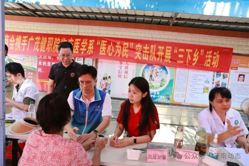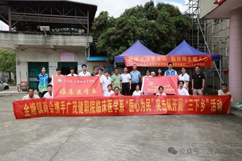 7月6日至12日,茂南区金塘镇商会联合广东茂名健康职业学院临床医学系“医心为民”突击队,在金塘镇开展以 “医路护塘助振兴・红色基因传健康”为主题的“三下乡”实践活动。活动融合健康服务与红色文化传承,通过义诊服务、急救培训、红色研学等多元形式,提升群众健康素养和健康水平,推动学生将医学知识转化为实践能力,在服务中厚植家国情怀,助力乡村振兴。