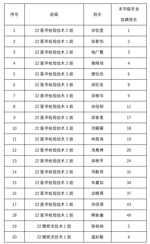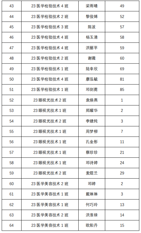 关于医学技术系2023-2024学年国家励志奖学金受助学生初审名单的公示
