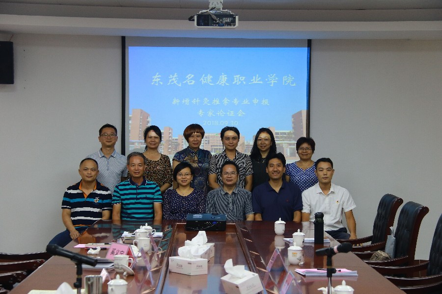 2018年9月30日下午,广东茂名健康职业学院在综合楼五楼会议室召开针灸推拿专业申报专家论证会会议。本次论证会主要就今年申报的针灸推拿专业人才需求分析、专业建设必要性与可行性、人才培养方案和专业建设方案进行论证。邀请了广州中医药大学李敏教授与黄康柏副教授、茂名市中医院何泽多针灸推拿副主任医师、高州市中医院陈耀南针灸推拿副主任医师、茂名市人民医院林廷樾主任医师(正高)等5位专家出席论证会。严业超副校长、教务科研处处长、医技系主任及专业带头人出席会议。会议由教务科研处奚义宁副处长主持。