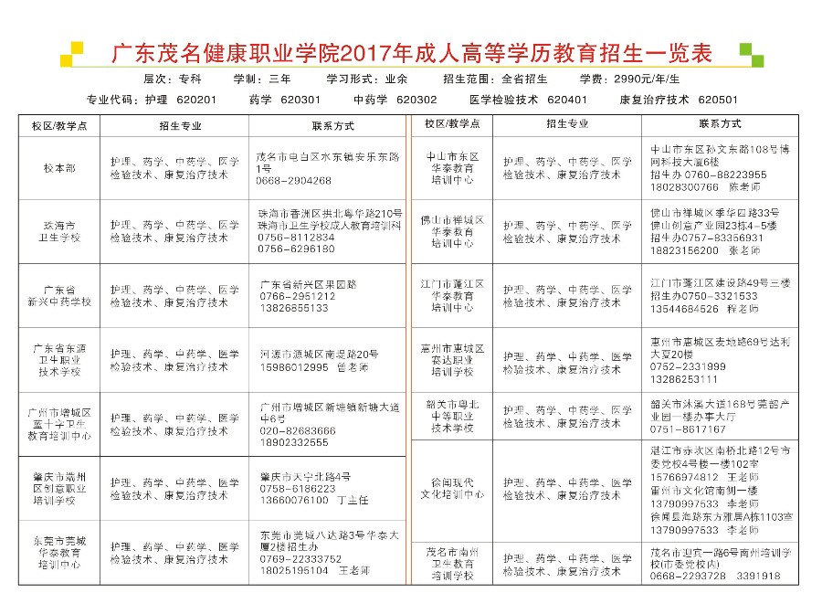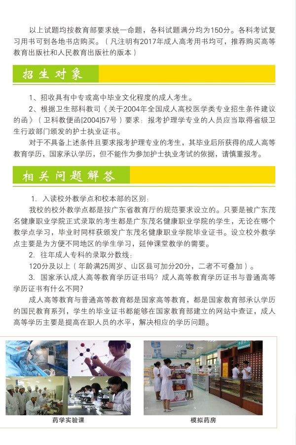 2017广东茂名健康职业学院成人高等学历教育招生简章