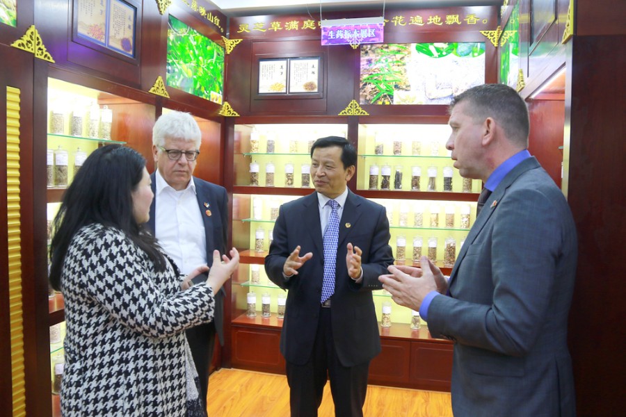 (图为杨云同志与考克斯市长等讨论中药价值)