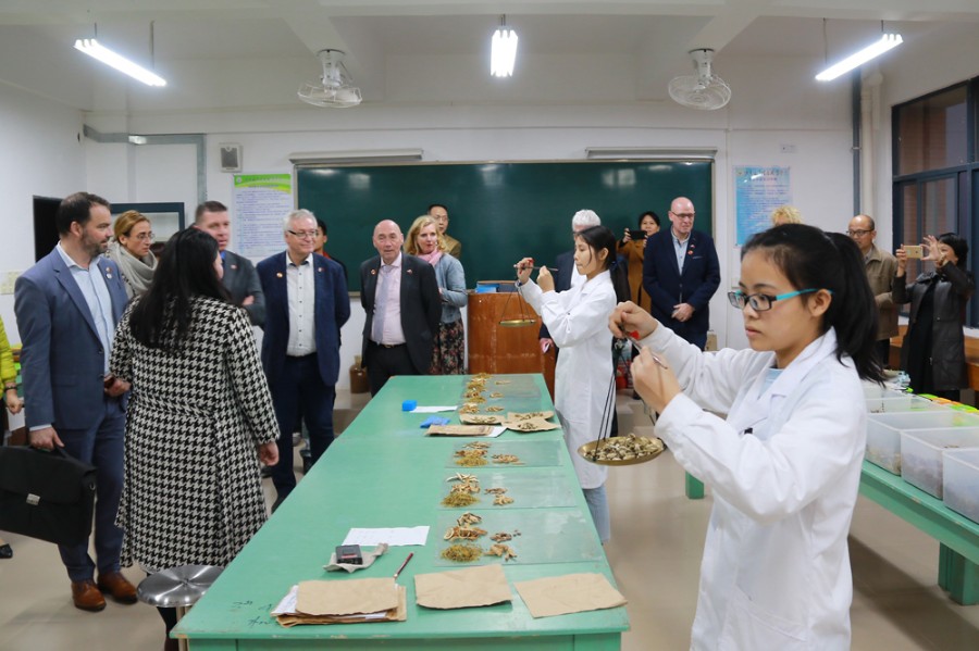 1月16日下午,荷兰斯塔德-赫伦市市长考克斯带领战略发展部、经济部、南方应用科技大学孔子学院等部门一行到我院参观访问。我院负责人杨云同志就我校专业设置、硬件设施、招生情况、学生就业等问题,与来宾们进行了交流。与此同时,荷兰斯塔德市代表团参观了我院实训中心的中药标本馆、大参林模拟药房、中药配制室、模拟病房等,还参观了中药学专业学生的配药现场,他们对学生的表现大加赞赏。参观过程中来宾对中药标本及模拟病房十分感兴趣,部分来宾还和我院专业教师中药学博士就海狗肾等中药材的药用价值、来源、命名等问题进行了深入的探讨。访问结束后,来宾赠送我院领导及老师斯塔德市的精美明信册及象征中荷友好的纪念徽章,并表示希望通过交流,加强护理、中医药技术、康复治疗等健康产业领域的合作。