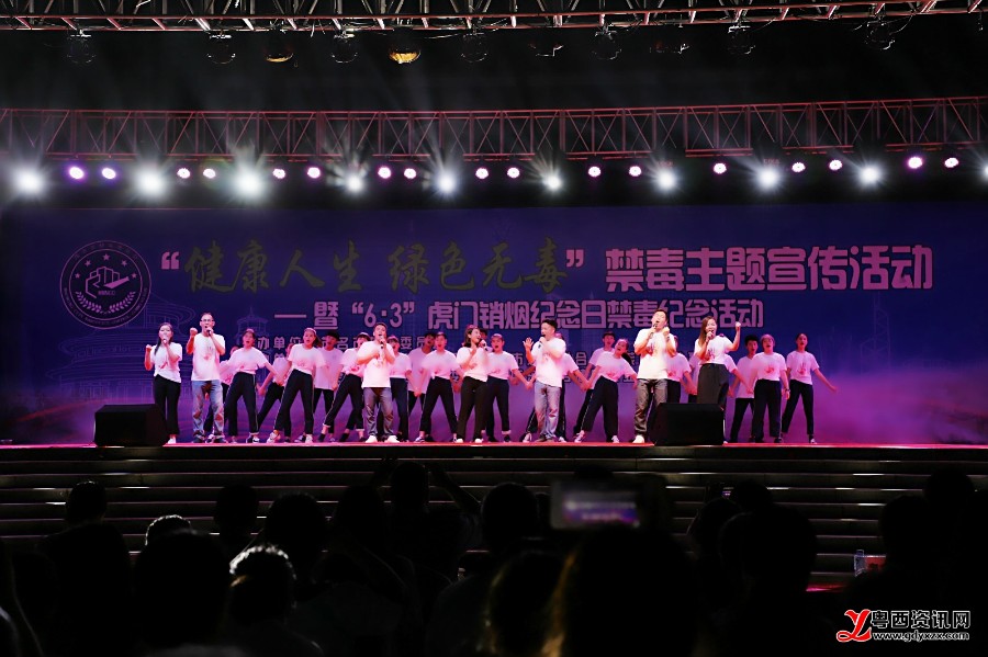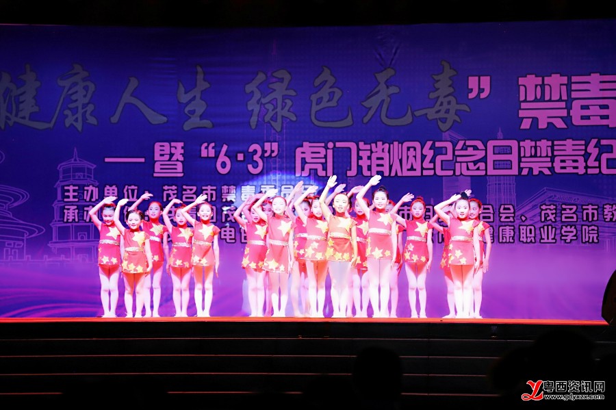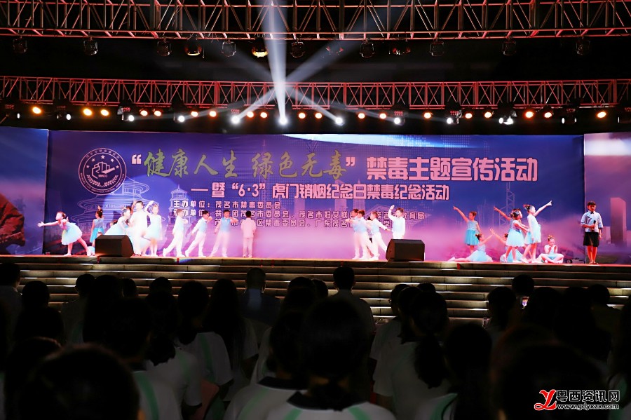 “我是中华民族的儿女,不忘耻辱,坚决与毒魔作斗争,珍爱生命,拒绝毒品……”,随后,到场的全体师生在领誓人的带领下,进行了禁毒宣誓,坚定地发出了拒绝毒品的承诺。而当天晚会的节目内容也是紧紧围绕本次禁毒宣传活动的主题,朗朗上口的《禁毒拍手操》、富有感染力的《少年中国说》、动感的《我的警察梦》舞蹈,来自电白区第四小学和电白区第九小学的小学生们用他们精心准备的表演向现场观众宣传禁毒知识,传递青少年对于毒品的认识和态度。此外,阳光妈妈舞蹈队、“快乐宝宝”杯禁毒歌唱大赛各分赛区冠军、茂名第一职业技术学校等表演团队也为现场观众带来了精彩的节目。