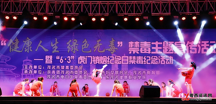 6月2日晚上,在“6·3”虎门销烟纪念日到来之际,由茂名市禁毒办主办,团茂名市委、茂名市妇联、茂名市教育局、电白区禁毒办、广东茂名健康职业学院共同承办的“健康人生 绿色无毒”禁毒主题宣传活动——暨“6·3”虎门销烟纪念日禁毒纪念活动启动仪式在广东茂名健康职业学院举行。本次活动作为全省21个地级市、121个县(市、区)同步开展纪念宣传活动的茂名分会场,地点设在电白,旨在展示我市禁毒宣传工作成效,进一步营造浓烈的禁毒斗争氛围,提高广大人民群众的识毒、防毒、拒毒意识,为深入推进全民禁毒工程和电白重点整治地区“摘帽”奠定良好的基础。市禁毒委有关成员单位、电白区禁毒委有关成员单位和各镇(街)分管禁毒工作的主要领导、展翼禁毒社工、禁毒志愿者和广东茂名健康职业学院师生代表参加了本次活动。