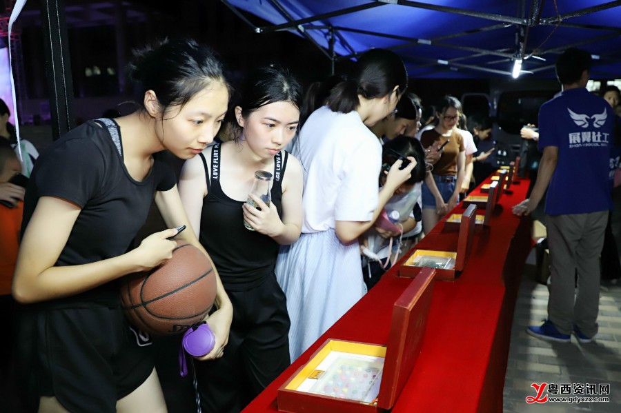 除了主题晚会,本次活动会场设置了电白区禁毒重点整治图片展,向前来参观活动的人员展示电白区近年来在打击毒品方面的工作和科普各种禁毒知识。同时,活动现场还布置了毒品实物展示区,展出了多种现在社会上常见的新型毒品和传统毒品的原材料。直观的展示形式吸引学生们驻足观察,他们纷纷向现场的禁毒社工和禁毒志愿者提出了关于眼前毒品的问题并拿出手机拍下毒品的图片。来自广东茂名健康职业学院的李同学表示,这次禁毒宣传活动是他目前为止参加过的最大规模的一次,现场展出的毒品类型也是他以前没有见过的,让他对于毒品实物有了初步的认识。他也发现原来毒品实物跟他想象中的样子不太一样,他觉得这次活动是一次很好的科普机会。现场的禁毒志愿者也表示,现在社会上的新型毒品多种多样,不法分子经常会把毒品伪装成糖果等食物,如果同学们没有接触过,就容易发生误食的情况。而通过展示毒品实物的方式,能够引起学生的兴趣,留下深刻印象,再配合禁毒志愿者的提醒和解说,他们相信可以在学生群体中形成良好的效果。