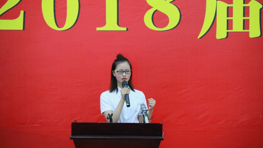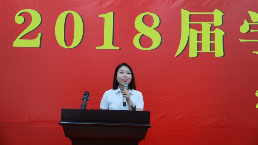 (在校学生代表、学生会主席吴敏怡同学致词)