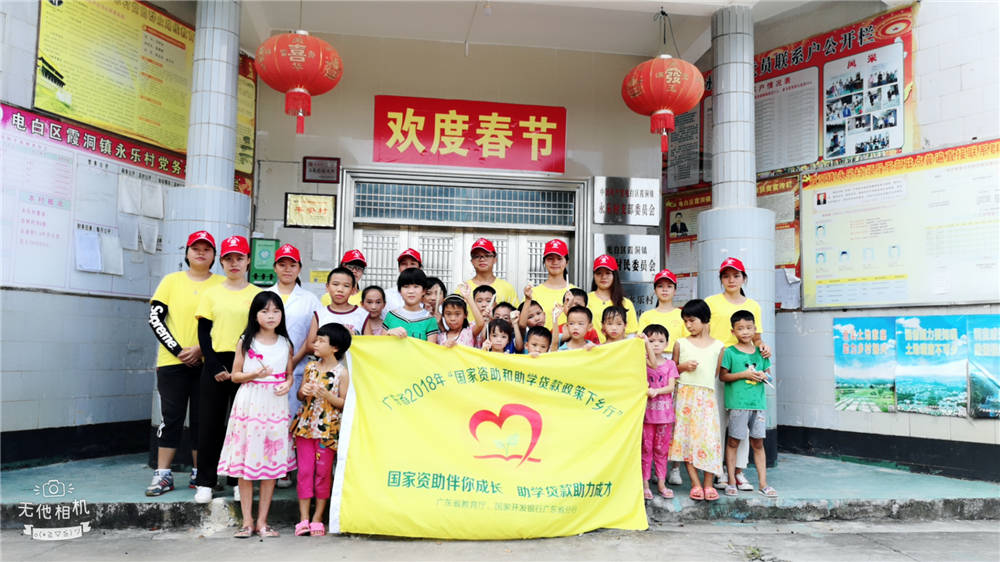 为全面贯彻党的十九大精神,宣传国家资助政策,不让学生因家庭经济困难而失学。我校积极响应广东省教育厅、国家开发银行广东省分行联合主办的“国家资助和助学贷款政策下乡行”活动号召,组建省级立项队伍----助力圆梦先锋队,于8月1日赴茂名市电白区霞洞镇永乐村开展国家资助政策下乡行活动。