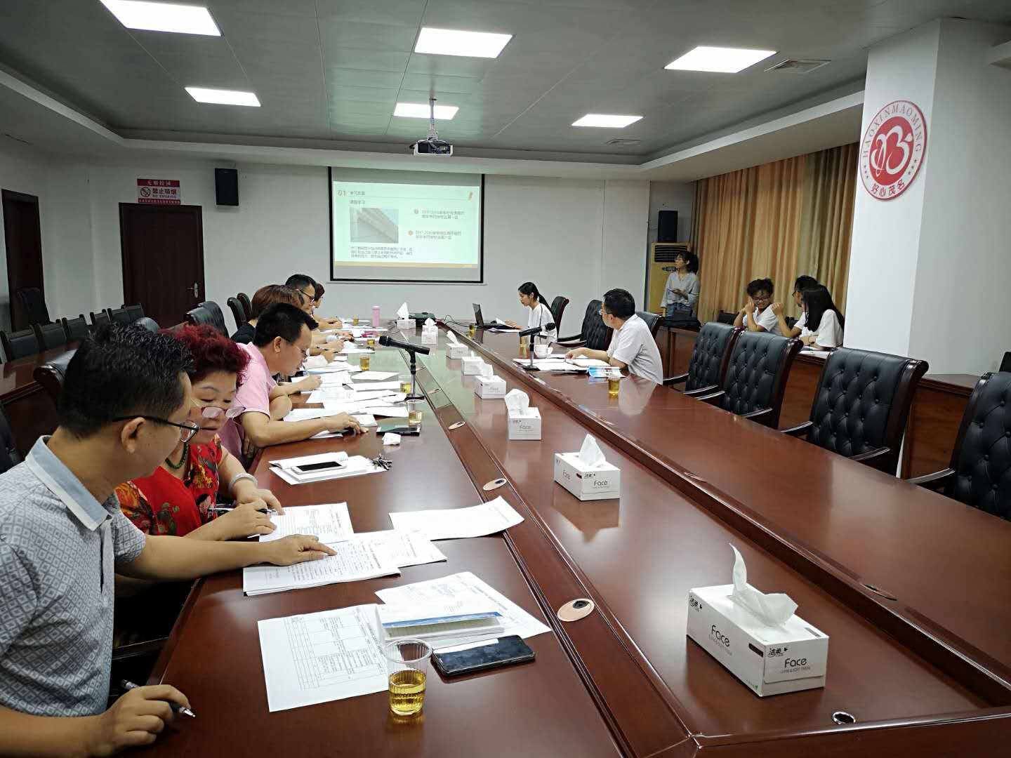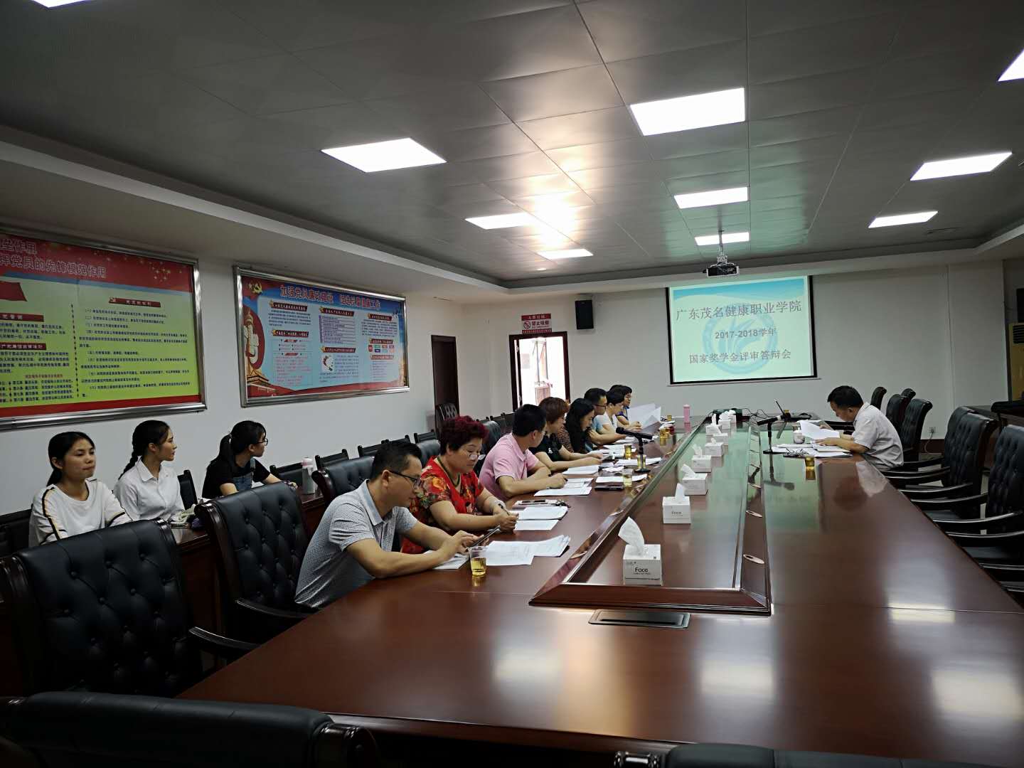 为切实做好2017-2018学年国家奖学金的评选工作,充分发挥国家奖学金的激励作用,给优秀学生更多展示自我的机会;同时为保证评审的“公开、公平、公正、择优”,10月8日下午,我院在行政楼5楼会议室举行2017-2018学年国家奖学金答辩会。会议由学院领导林里泉主持,教务处李祎科长、学生工作处 吴盛桂科长 、招生实习就业指导处冯武强科长、财务处李莲芳科长、办公室俞小波副主任、团委卢庆芳书记和系主任李燕飞、罗肖华、张清露担任答辩大会评委。学院学生资助中心王老师和4位学生助理进行登分和统分。
