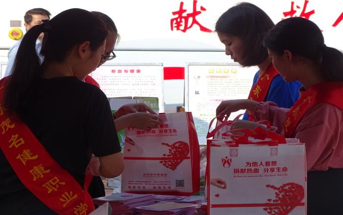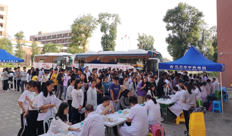 无偿献血是人道、博爱精神的崇高体现。为发挥当代大学生爱心奉献、服务社会的精神,增强青年团员的社会责任感,培养正确的人生观和价值观,2018年12月4日,广东茂名健康职业学院联合茂名市中心血站,在学院图书馆前面中心广场进行以“众志成城二十载,热血汇聚中华情”为主题的无偿献血活动,师生们积极踊跃参与,共计700多人,自愿献出自己的一滴滴鲜血,捐出一份份爱心。