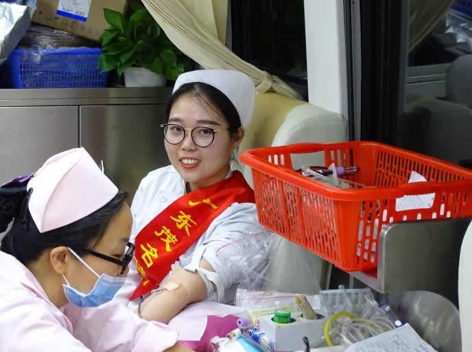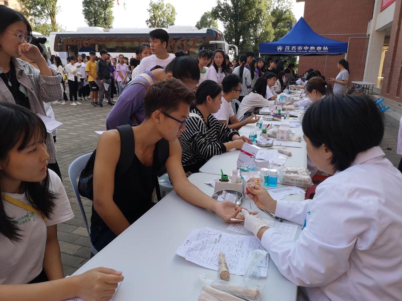 (图为献血活动现场的同学)