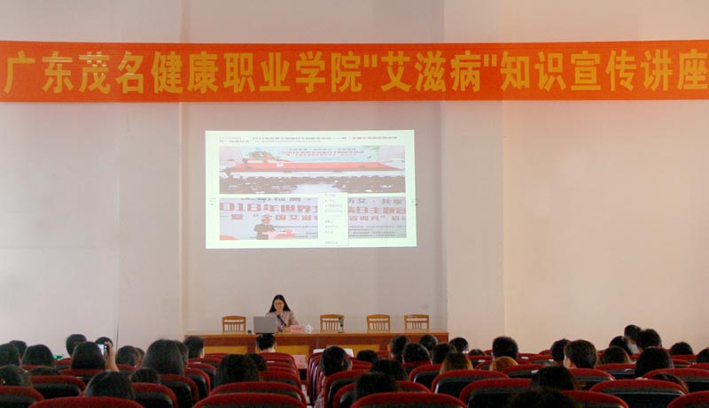 为了更好落实和执行党和国家的艾滋病防治政策,提高大学生群体的艾滋病防治知识,增强艾滋病防治意识。广东茂名健康职业学院联合茂名市疾控中心于2018年12月4日下午15时15分在学术报告厅举办了一场以“主动检测、知艾防艾、共享健康”为主题的“艾滋病”知识宣传讲座。学院开办工作领导小组组长杨云,副组长林里泉,成员吴松参加了会议。进行讲座的专家是来自市疾控中心艾滋病防控科科长吴晓英。