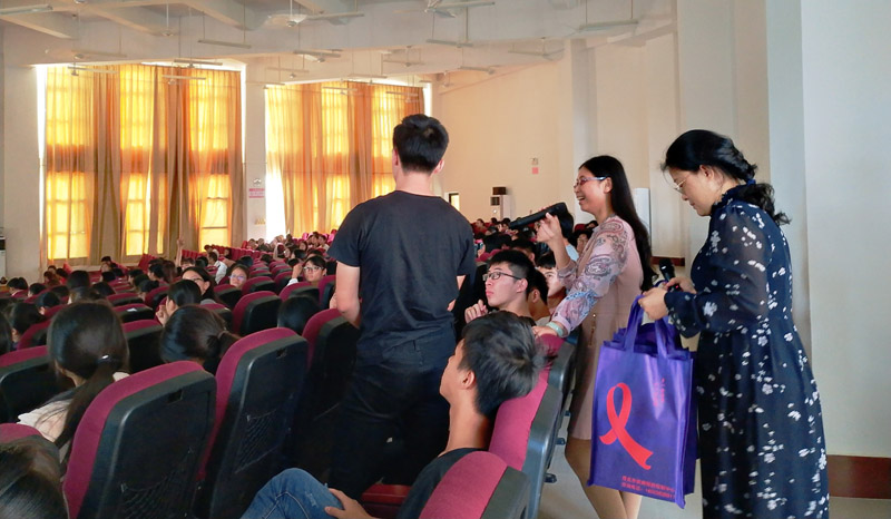 在活动的最后,吴晓英科长进行了有奖抢答、抽奖活动,把现场的气氛推到了高潮的同时,让同学们更加容易地记得艾滋病的相关知识。