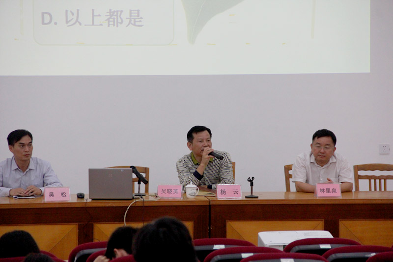 在活动的一开始,吴晓英科长向在座各位同学简单介绍了全球、本国以及广东省的艾滋病疫情概况,进而指出“艾滋病离我们并不遥远”的情况,提醒在座的同学们要重视艾滋病的防治。接着,吴晓英科长还为各位同学讲解艾滋病基本概念、传播途径、预防措施等相关知识,进一步向青年学生宣传如何远离艾滋病。最后,还指出主动检测对个人的好处,以及检测的时间、地点和人群,让同学们懂得如何提高预防、检测艾滋病。
