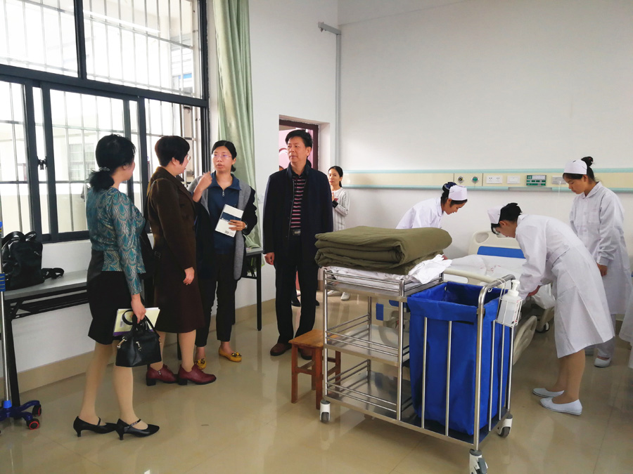 (图为双方人员参观来宾市卫生学校实训教学)