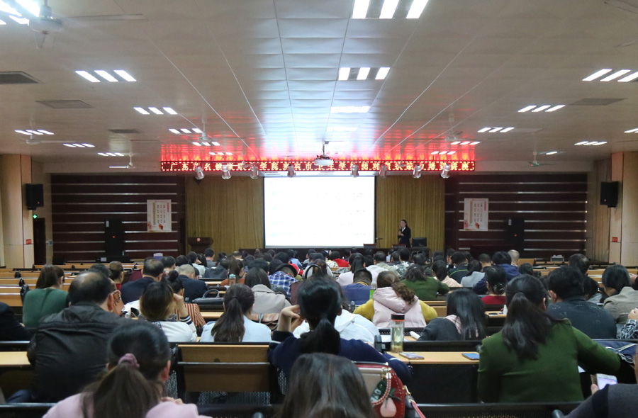 (图为教师代表王洁艳在来宾市卫生学校做信息化教学讲座)