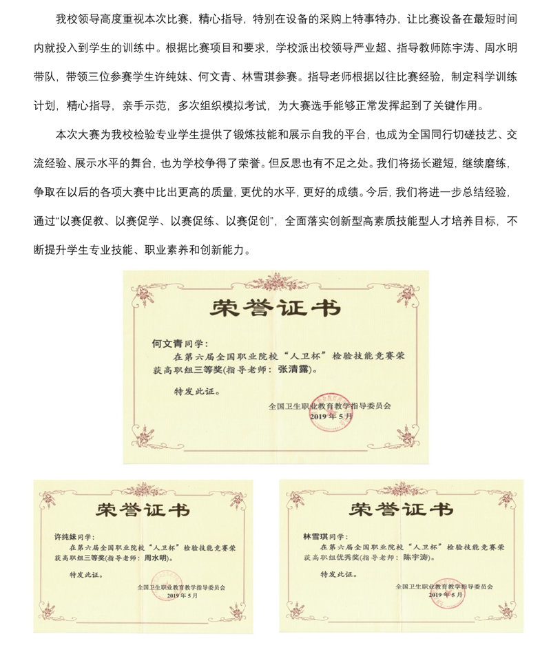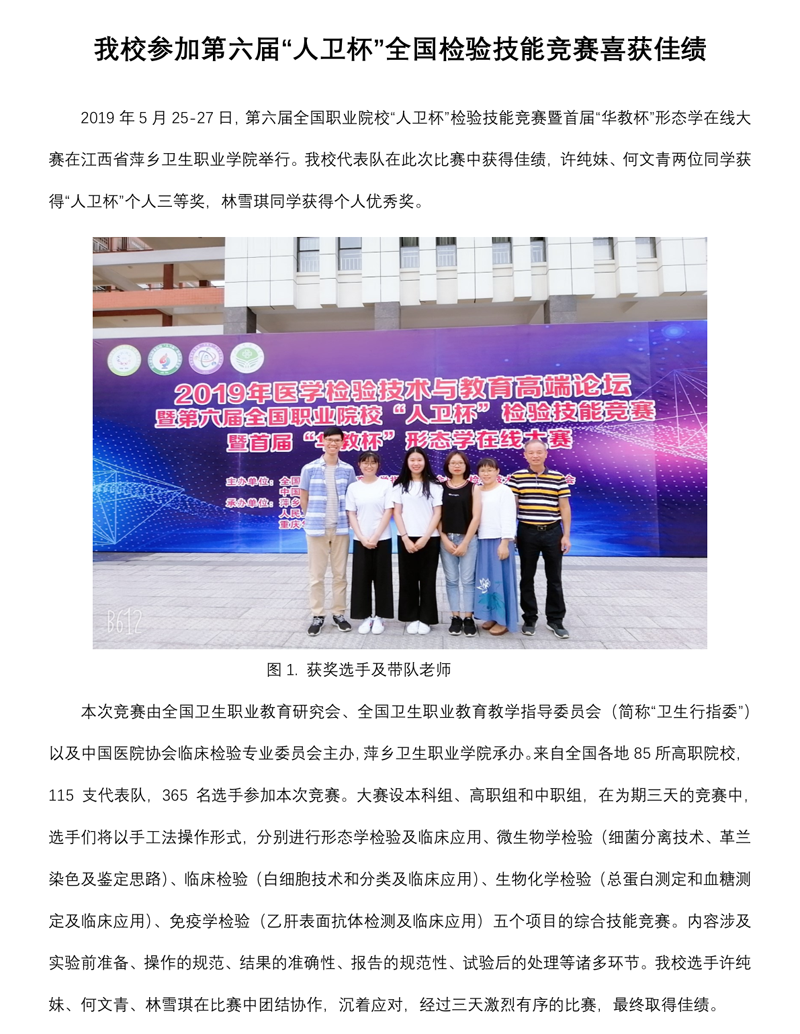 我校参加第六届“人卫杯”全国检验技能竞赛喜获佳绩