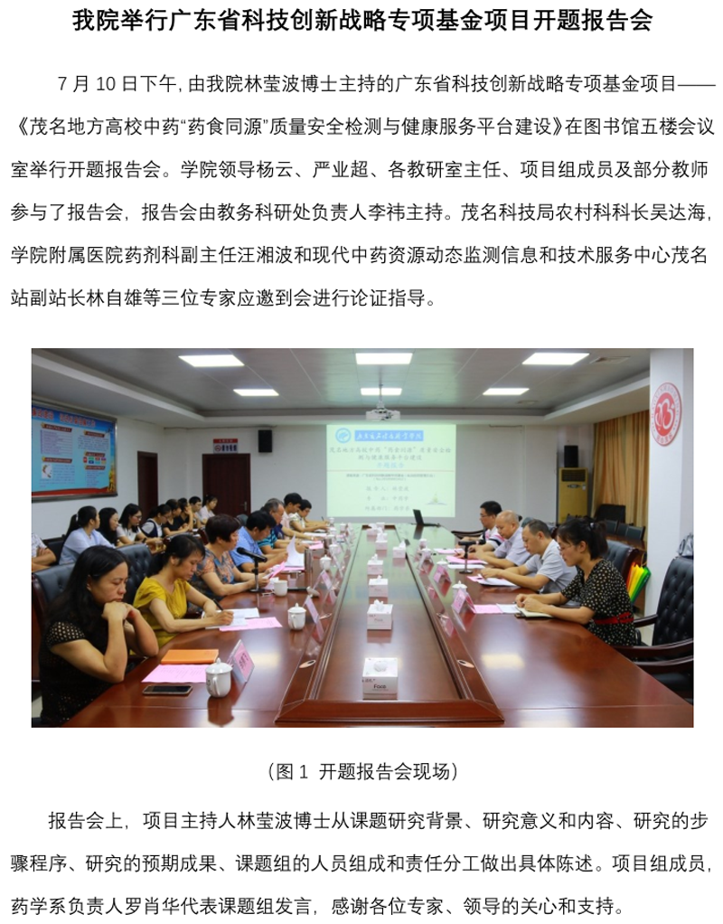 我院举行广东省科技创新战略专项基金项目开题报告会