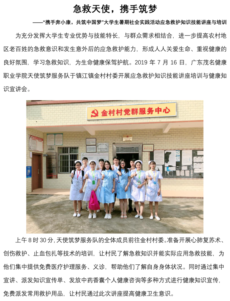 我校护理系开展“携手奔小康,共筑中国梦”大学生暑期社会实践活动