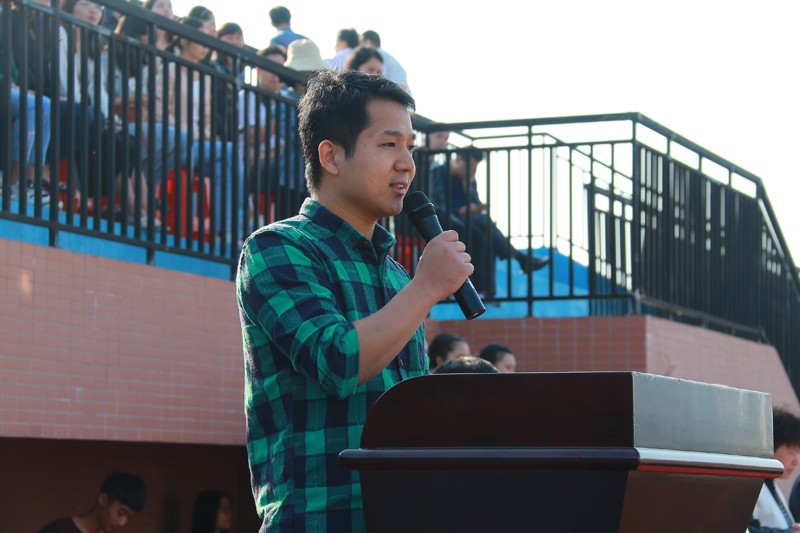 (图为裁判员代表梁阳老师讲话)