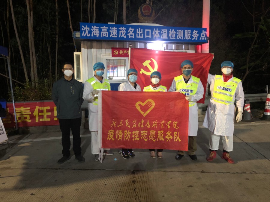 自新冠肺炎疫情发生以来,广东茂名健康职业学院党委高度重视疫情防控工作,1月28日,发出了《中共广东茂名健康职业学院委员会关于紧紧依靠人民群众坚决打好打赢新型冠状病毒肺炎疫情防控阻击战的倡仪书》;1月30日,通过学习强国视频会议平台召开学院党委扩大会议部署疫情防控工作;2月1日,学院党委成立广东茂名健康职业学院疫情防控包茂高速茂名东出口志愿服务队临时党支部和沈海高速茂名出口志愿服务队临时党支部。面对严峻的疫情,学院党员和教职员工临危不惧,挺身而出,积极响应党委号召,组成疫情防控志愿服务队,切实做好茂名两个主战场的疫情防控志愿服务,每日安排4个班次,每个班次8名志愿者,全天24小时轮守。凌晨班次最辛苦、最难熬,许多党员喊出了“我是党员,我先上”的口号,以实际行动践行初心使命,展现党员风采,彰显党员先进性,体现党支部的战斗堡垒作用。