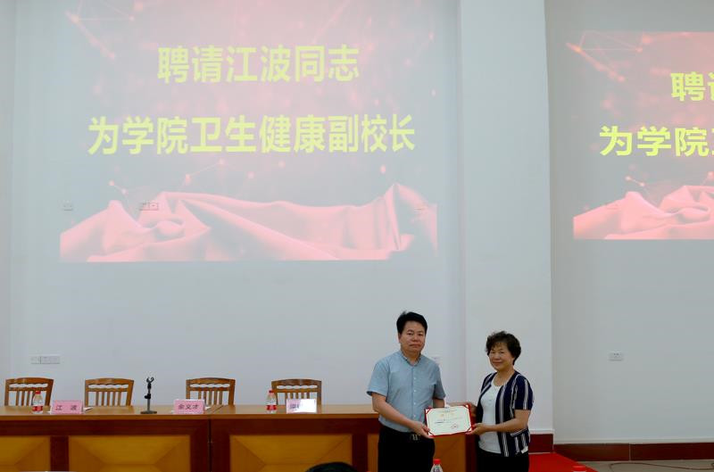 梁德萍院长为茂名市人民医院副院长江波同志颁发卫生健康副校长、客座教授聘书