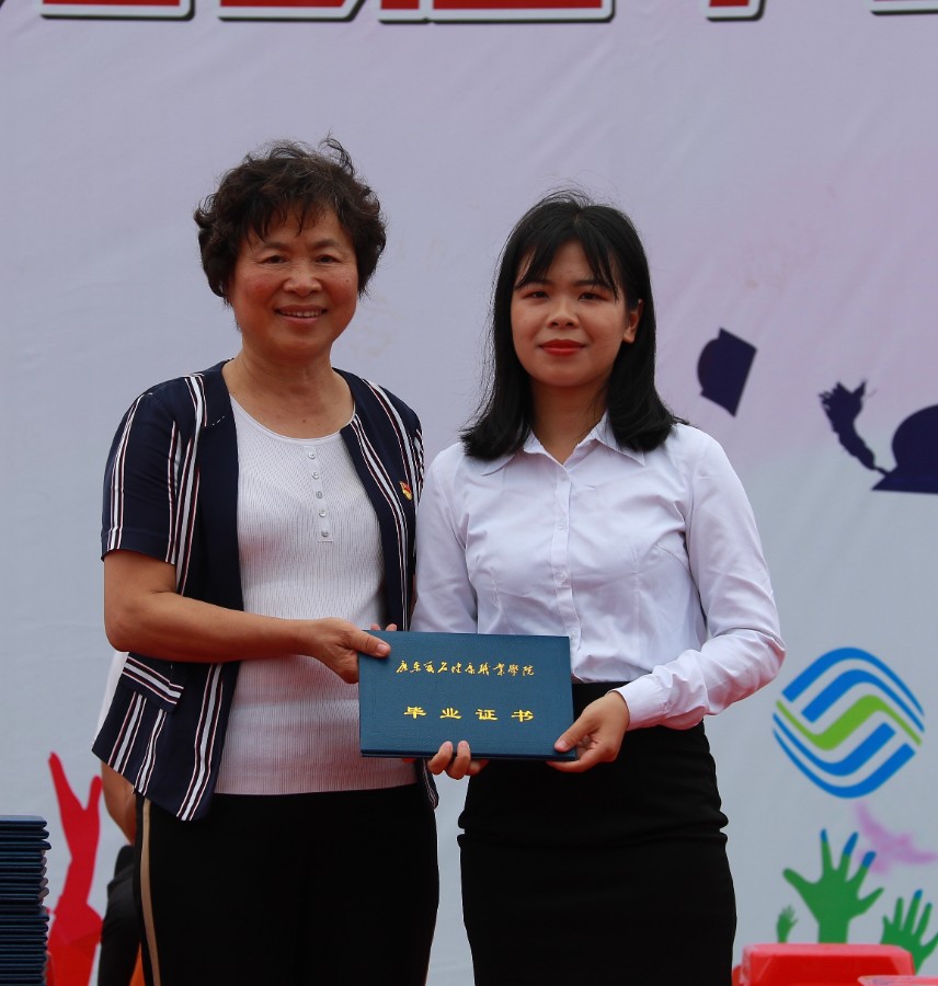 学院院长梁德萍为毕业生代表颁发毕业证书