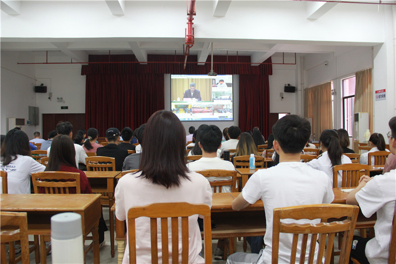 2020年11月10日下午,学习贯彻党的十九届五中全会精神宣讲报告会在广东省广州市举行,中央宣讲团成员、十九届中央委员、广东省委副书记、省长马兴瑞在中山大学向全省教育系统作专题宣讲报告。我院领导班子成员、各党政管理机构、教学教辅机构党政负责人和师生代表在学院图书馆七楼会议室以电视电话会议形式收看宣讲报告会。