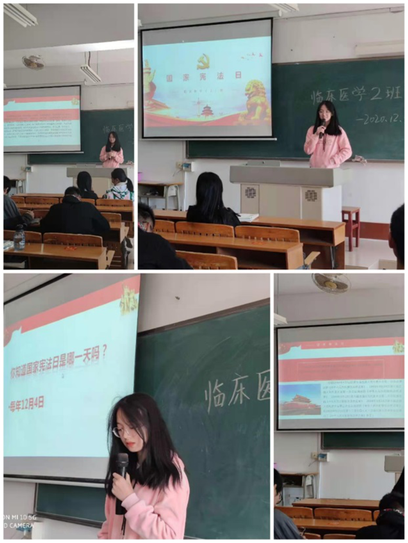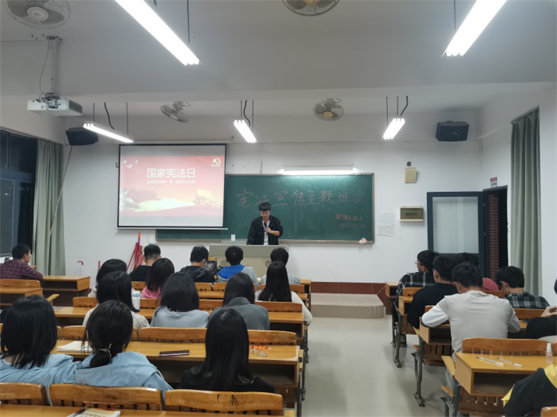 一、开展“深入学习宣传习近平法治思想,大力弘扬宪法精神”专题讲座。12月3日下午,在护理实训楼101拉开了帷幕,由卢庆芳副教授向各班组织委员宣讲宪法。