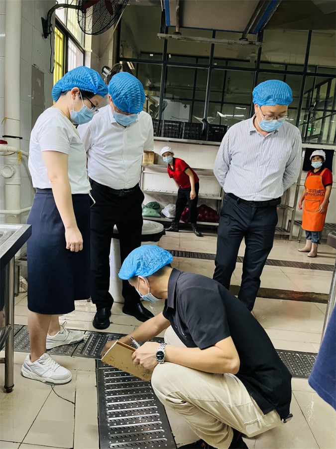 陈哲林走访了食堂内部及周边,重点对食堂的卫生消杀、餐具检测、消防设施设备、有害生物防治、“互联网+明厨亮灶”系统及档口菜品准备情况进行了检查和指导,并与食堂工作人员进行了详细的询问与交流,叮嘱食堂管理人员要严格把好食品安全关和服务质量关。