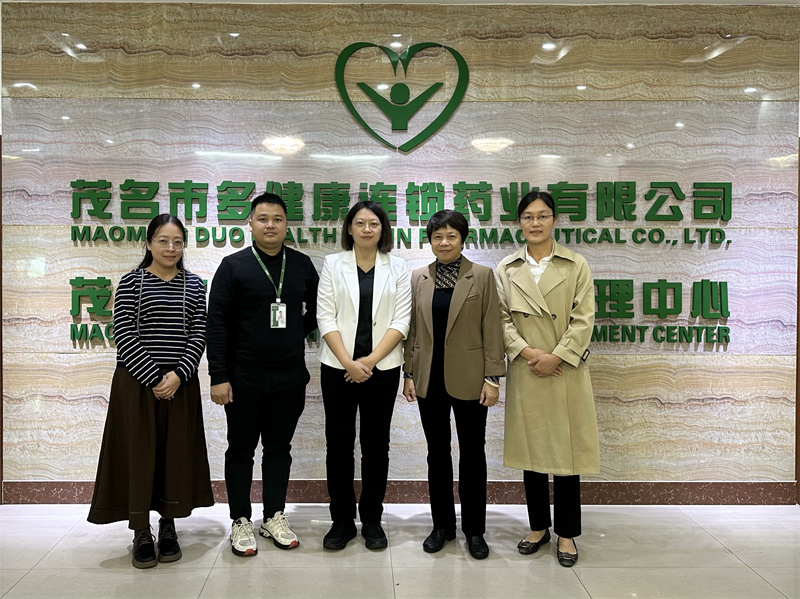 随后,钟茹一行走访茂名市多健康连锁药业有限公司、茂名市善水健康管理有限公司。在企业相关负责人的陪同下,调研团队深入生产运营一线,了解企业的业务布局、核心竞争力、运营模式及人才需求导向,就人才培养标准、实习基地建设、就业岗位供给、产学研项目合作等方面达成合作意向。